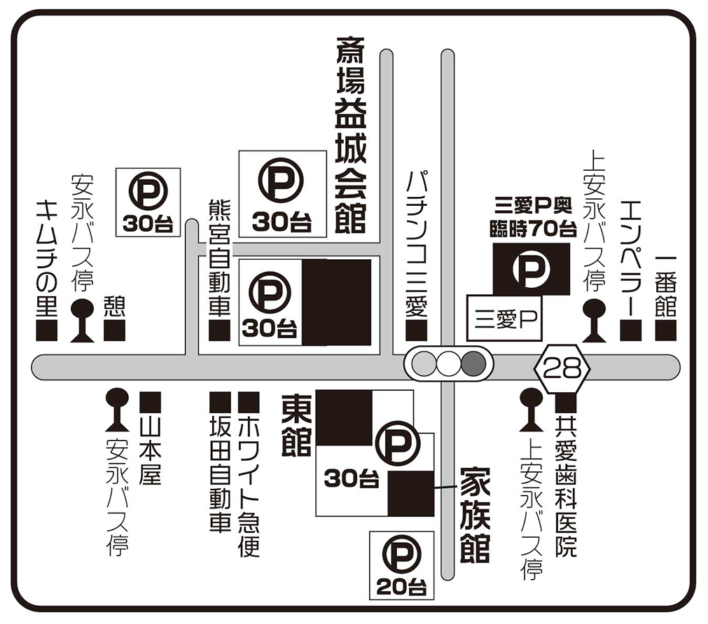益城会館には、最大250名様に対応した2階椅子席大斎場があります。会葬人数がそこまで多くないと見込まれる場合、席数調整・パーティションによる間仕切りをすることで、お望みになる式場へアレンジします。規模だけでなく、幅広い要求にお答え出来る斎場です。